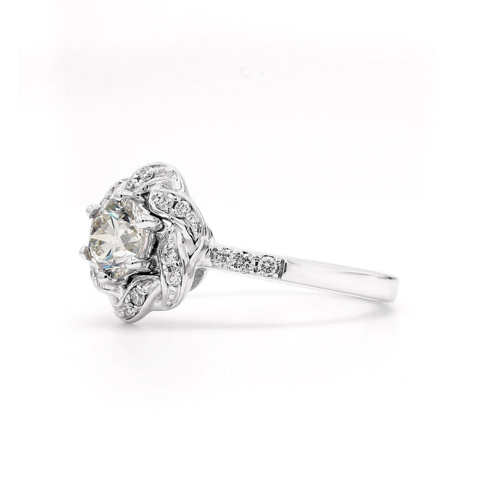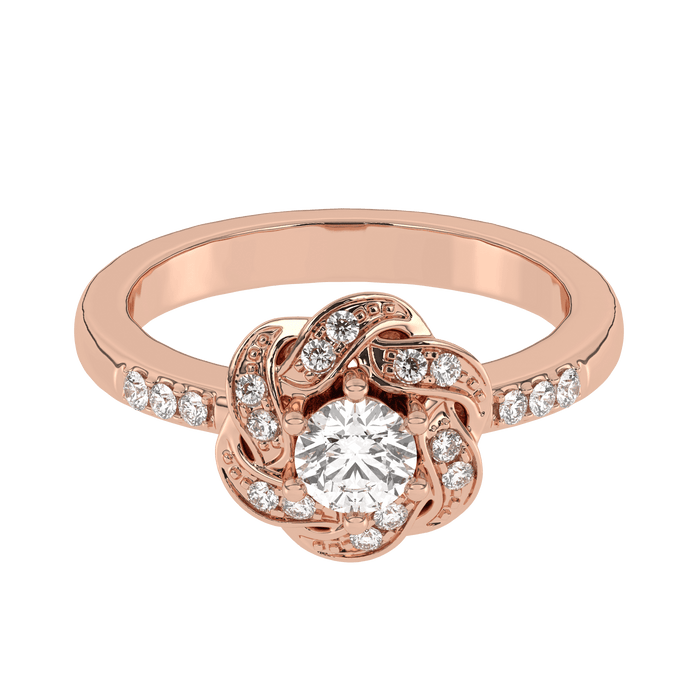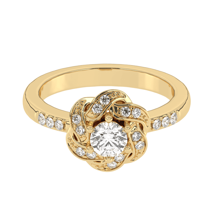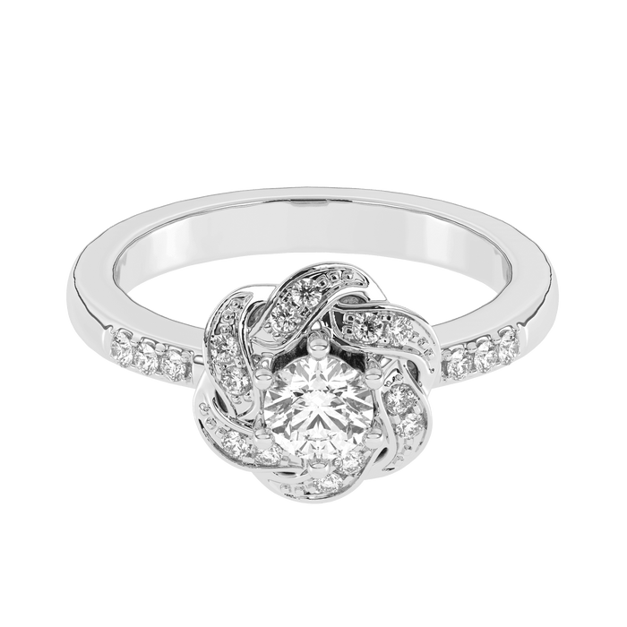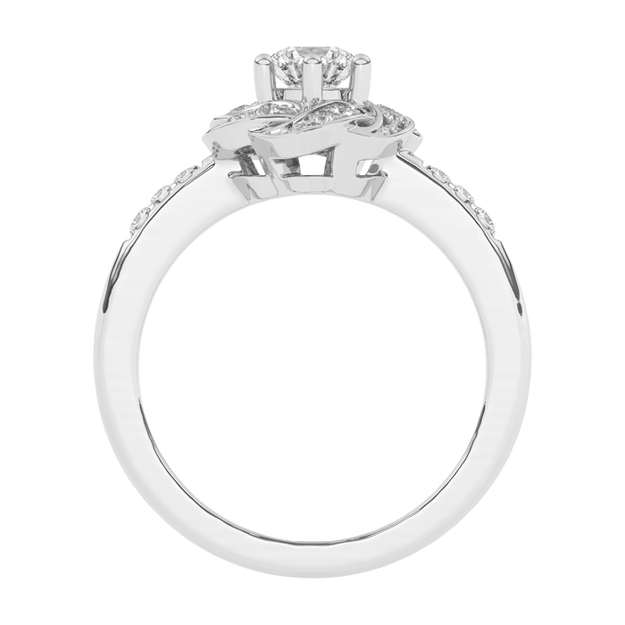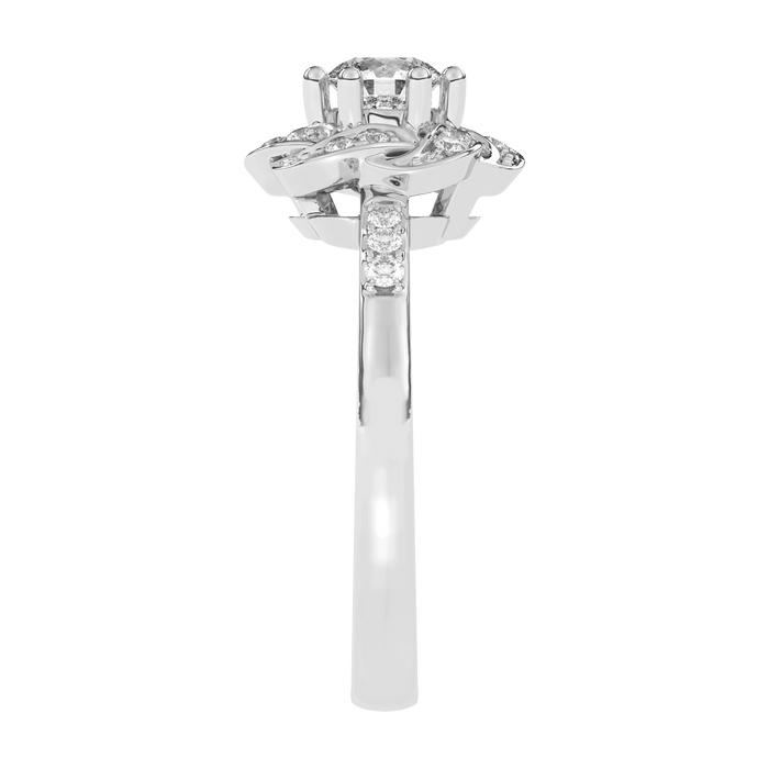 Fashioned in precious gold or platinum, this impressive design highlights the lab grown diamond you choose. Holding the center is a flower design halo adorned with F-G, VS-SI lab grown diamonds to complete this magical look. A lifetime flower that blossoms with 1/3 carats of lab grown diamonds; this engagement setting is timeless.