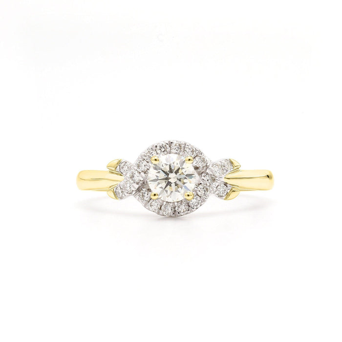 A petite style with a great look. The bypass design wraps around the lab grown diamond you choose with F-G color and VS-SI clarity lab grown diamonds. Making a big impression out of a small style, this 0.20 carats of lab grown diamonds and a brilliant buffed luster, is an engagement ring is fit for a princess.