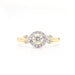 This setting is pictured with a 0.47 carat center lab grown diamond. This style is designed for round shaped diamonds between the 0.33 and 0.50 carat in size. Depending on the lab created diamond you choose, the center shape and prong count may adjust to accommodate the diamond.