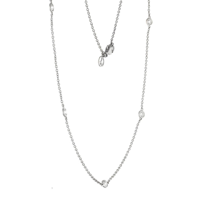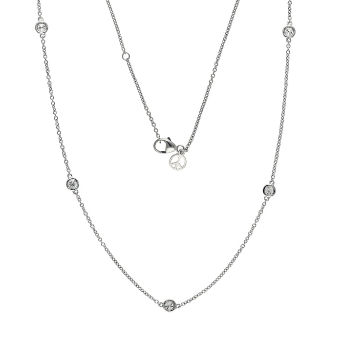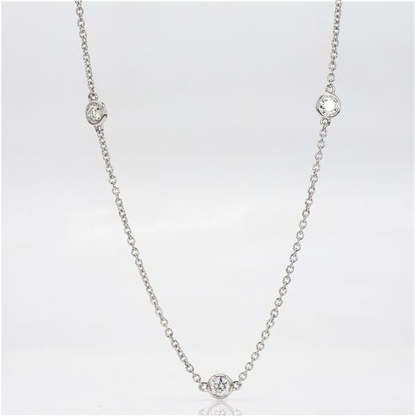 Expertly crafted with five stations of bezel-set lab grown diamonds, this necklace boasts a stunning 1/2Ctw. Your choice of sterling silver in an 18-inch adjustable chain. The diamonds are graded F-G/VS-SI, ensuring the highest quality and brilliance. Elevate your look with this luxurious and environmentally friendly piece.