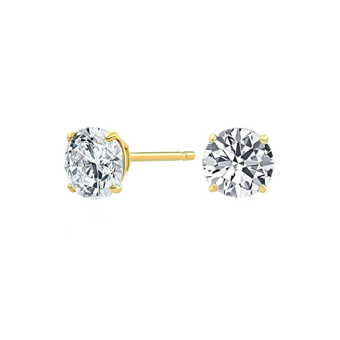 Simple and classic these lab grown diamond solitaire stud earrings, radiate. Perfect for everyday wear, the optional carat total weights with brilliant round lab grown diamonds have a F-G color and VS-SI clarity. The solitaires are set in a four-prong basket style 14K white or yellow gold setting with butterfly back closures. These beautiful light weight earrings can stand alone or have an earring jacket to dress them up, extremely versatile and fit into any wardrobe and complement any occasion.