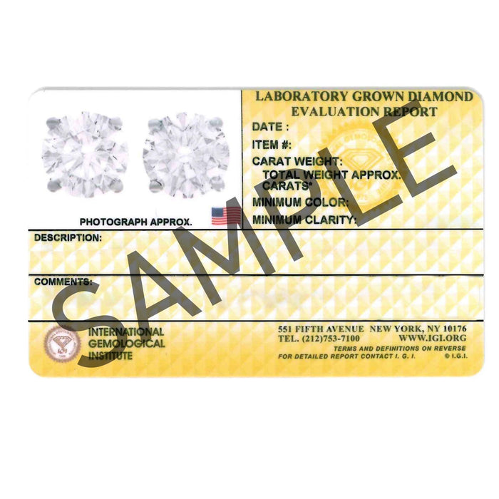 • Earrings ship complete with official certificate from the International Gemological Institute (IGI). The world's largest independent laboratory for testing and grading gemstones and fine jewelry.