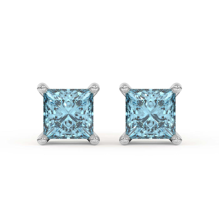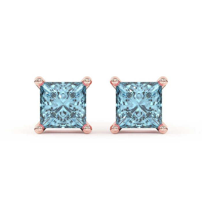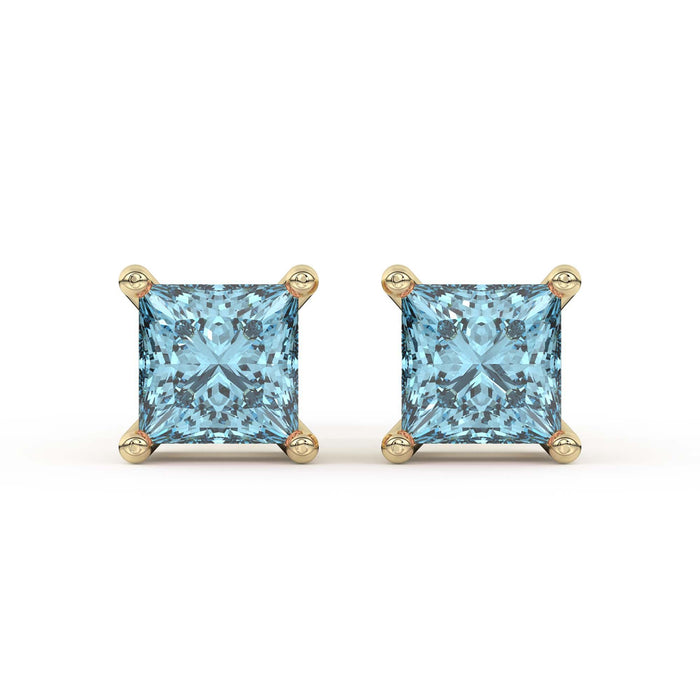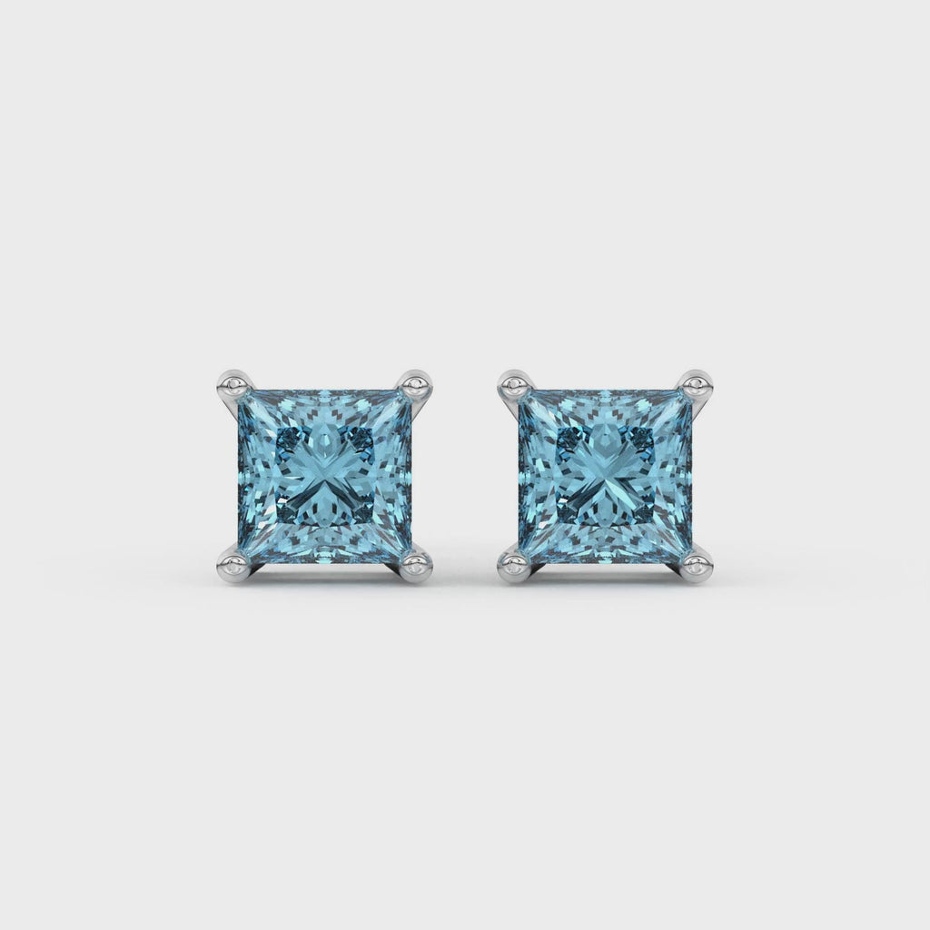 Simple, classic, and petite 1/4 carat total weight lab grown diamond solitaire stud earrings, radiate. Perfect for everyday wear, the brilliant princess lab grown blue diamonds have a VS-SI clarity. The solitaires are set in a four-prong basket style 14K gold post setting with screw back closures. These beautiful earrings can stand alone or have an earring jacket to dress them up, extremely versatile and fit into any wardrobe and complement any occasion.