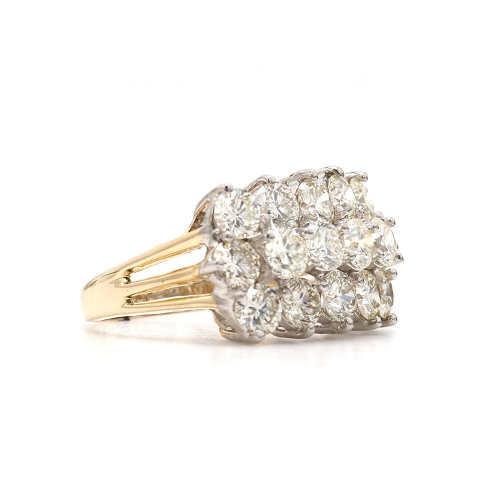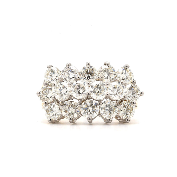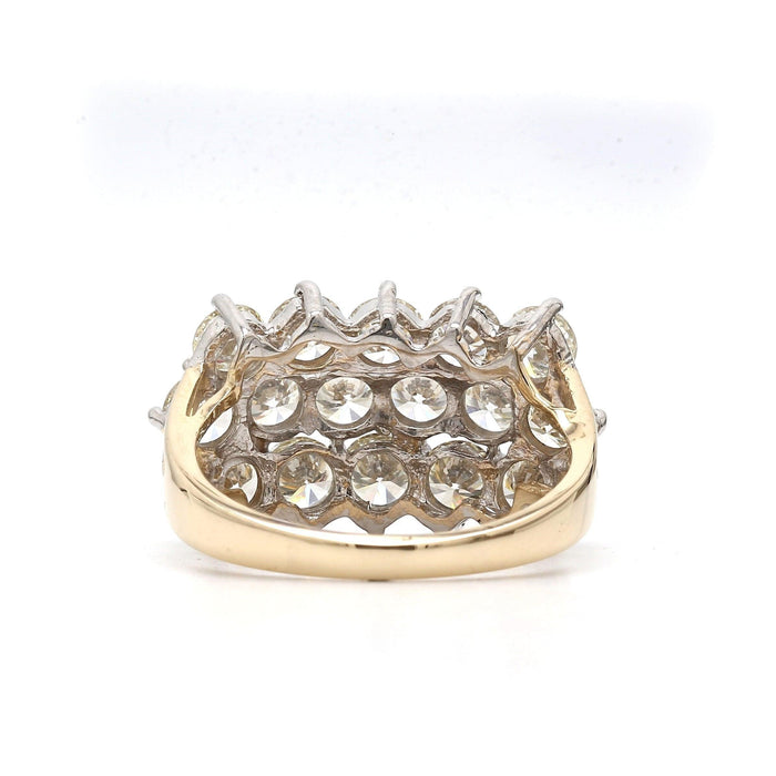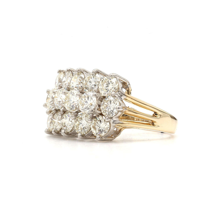 This chic choice makes a grand entrance with a magnificent 3 1/2 carat total weight of lab-grown diamonds in 14K gold. A flanked three-row look that features sparkling lab created diamonds with a color ranking of I-J with VS-SI clarity create this exquisite ring.