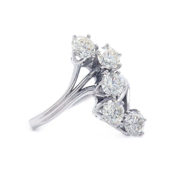 Amp up your wardrobe with this dramatic lab grown diamond ring. Sculpted in 14K gold, this cascading design shimmers with five lab grown diamonds totaling 2.00 carats that flow in a curved split shank design. The sparkling lab grown diamonds have a color ranking of I-J with VS-SI clarity that create this artful look.
