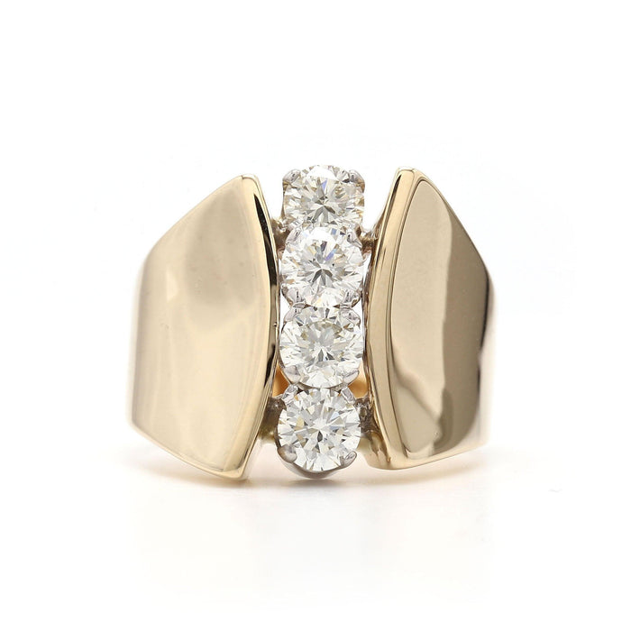 Dazzling and bold, this conversation style highlights 1 1/10 carats total weight of lab grown diamonds vintage style art deco flare. Crafted in 14K gold and lab grown diamonds with a color ranking of I-J and VS-SI clarity. Beautifully high polished finished and ready for any occasion.
