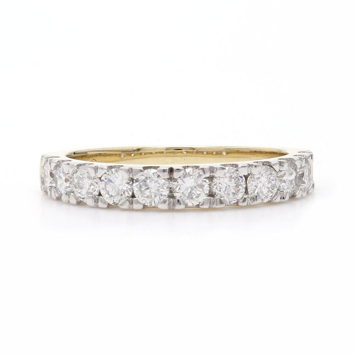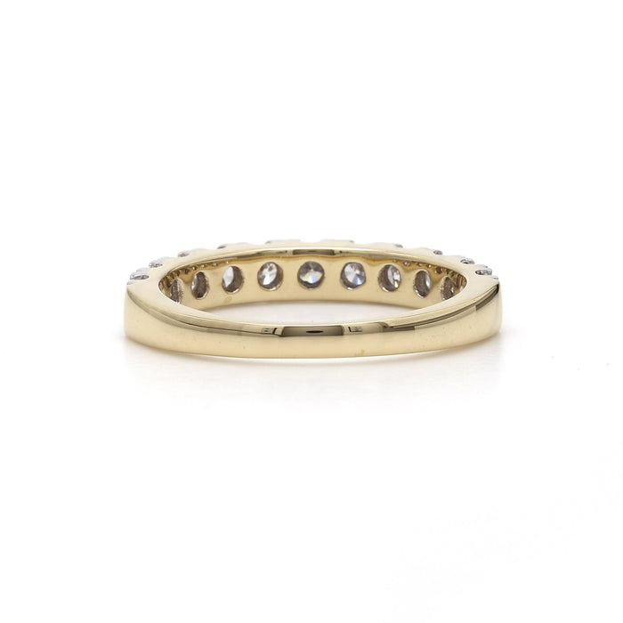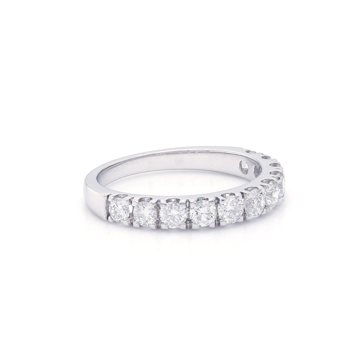 A brilliant celebration of your love, this lab grown diamond band is a memory in the making. Perfect for a wedding day, anniversary or "just because" band. A dazzling look that features a row of sparkling F-G VS-SI lab grown diamonds totaling 1.00 carat. It's slender style can stack nicely on the side or both sides of an engagement ring. It can also be paired with other smooth sided rings for a personalized touch. Available in white, yellow or rose 14K gold.