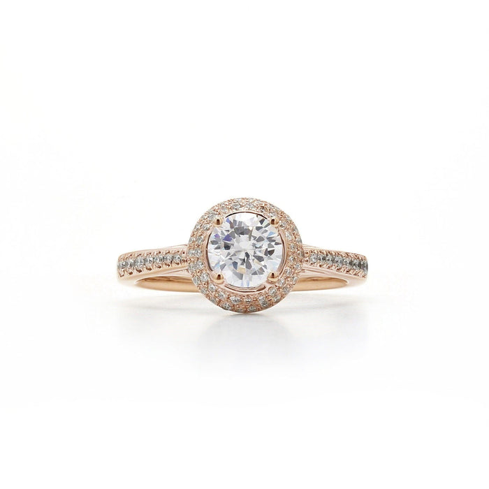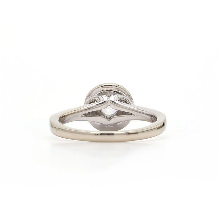 Classic and elegant, this lab grown diamond engagement setting suits her traditional tastes. Fashioned in platinum or gold, this ring showcases a double border of round accent lab created diamonds that wrap the center stone in a sparkling embrace, while additional accent diamonds line the ring's shank. Designed with a vintage touch, this ring captivates with 1/4 carat total weight of F-G VS-SI lab grown diamonds and a polished shine.