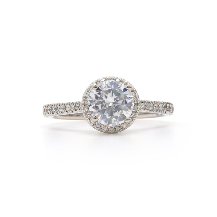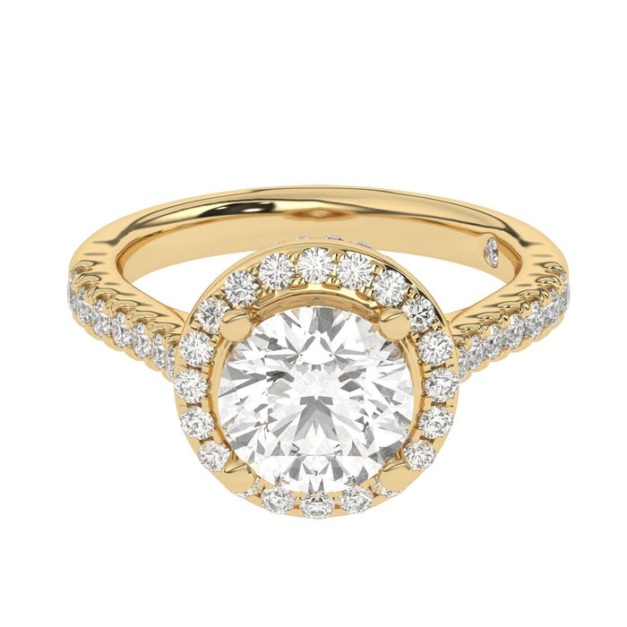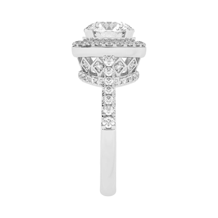 Make that special moment magical with this exquisite lab grown diamond engagement setting. Expertly crafted in gold or in platinum, this sparkling design showcases a crown mounting with a halo frame to set the lab grown diamond center stone of your choice in. Additional accent lab grown diamonds line the ring's slender shank. Designed to sparkle for a lifetime, this setting captivates with 1/4 carat total weight of lab grown diamonds and a bright polished shine.