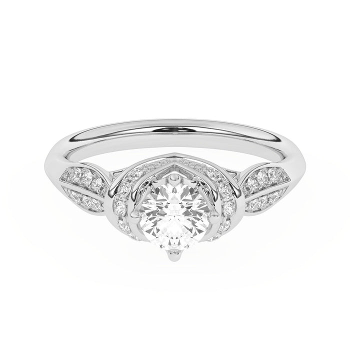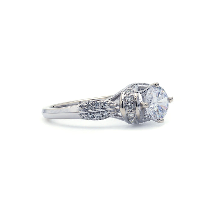 Pull out all the stops with this exquisite vintage style lab grown diamond engagement setting. Created in precious metal, this ribbon design showcases a the center stone of your choice on frame lined with shimmering round accent lab diamonds, while the lab grown diamond-lined double row shank is a thoughtful touch.