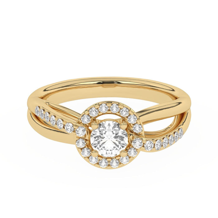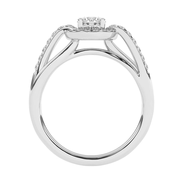 A glittering engagement setting that celebrates the unforgettable moments. Crafted in fine gold or platinum, this enticing halo style artfully set to enhance size and sparkle of the lab grown diamond you chose. The dazzling split shank showcases alternating ribbons of high polished gold and lab grown diamond lined. Radiant with 1/4 carat total weight of lab grown diamonds and a bright polished shine, this engagement ring proclaims sophisticated style.