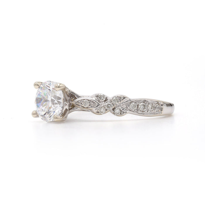 This beautiful design features a framework for the center stone of choice to be flanked by vintage style infinity band. Radiant with 1/5 carats of lab grown diamonds and a brilliant luster, this engagement setting is a beautiful beginning to your lifetime of love.