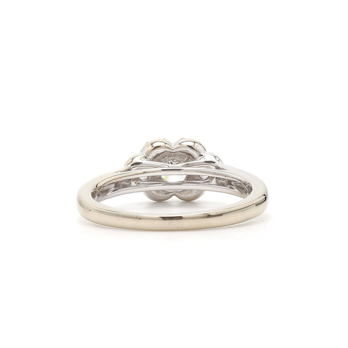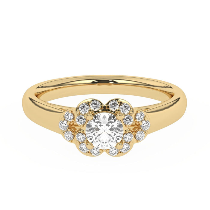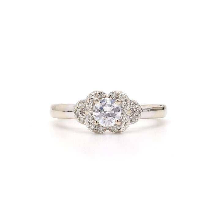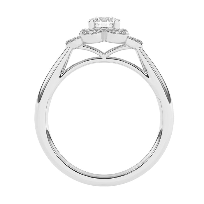 As brilliant as it is beautiful, this engagement setting has a simple, slender floral appeal in precious metals, gold or platinum. F-G and VS-SI lab grown diamond lined collars the center mounting in petal like fashion for 1/5 carat total weight of accent lab grown diamonds. A unique and elegant choice to add the lab grown diamond of your choosing.