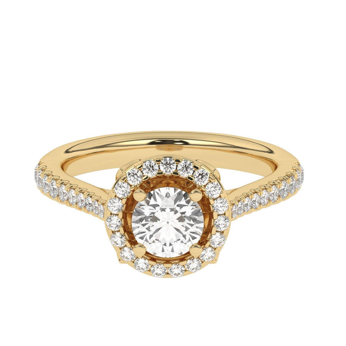 This shimmering lab grown diamond engagement setting has a beautiful reminder of all the love you hold in your heart for her in, open hearts line the setting beneath the crown. The lab grown diamond you choose will be encircled by a frame adorned with dazzling accent lab created diamonds, underneath the crown is four lab diamond lined leafs and additional lab grown diamonds line the ring's graceful shank to complete this radiant look. Captivating with 1/3 carat total weight of lab grown diamonds and a bright polished shine, this engagement ring is designed to impress for a lifetime.