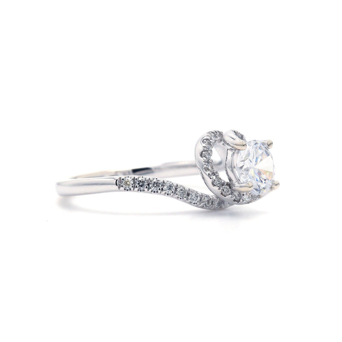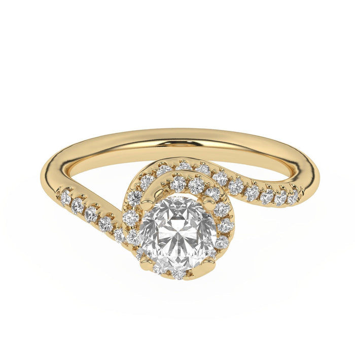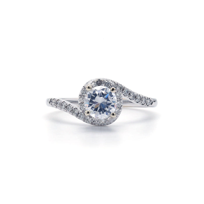 Your love shines with the simple look of a sparkling lab grown diamond engagement ring. Crafted in platinum or gold, this shimmering design features a four-prong center, wrapped in a halo frame of lab diamonds. The swirling shank continues with lab diamonds in a graceful bypass.