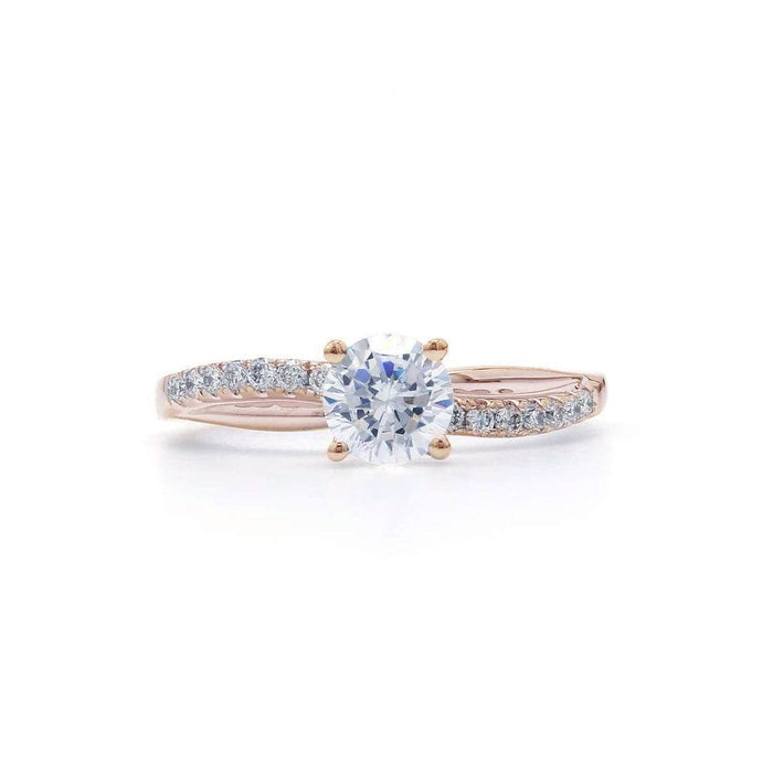 The intriguing look of this diamond engagement ring dazzles. Crafted in fine gold or platinum, this striking style highlights center stone you chose with a swirling lab grown diamond lined swirl design. Certain to be cherished, this engagement setting dazzles with 1/5 carats of lab grown diamonds and a brilliant luster.