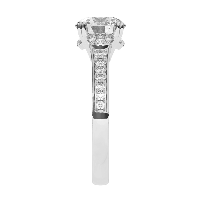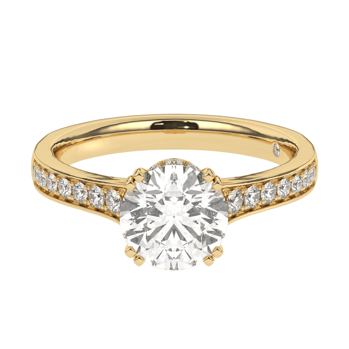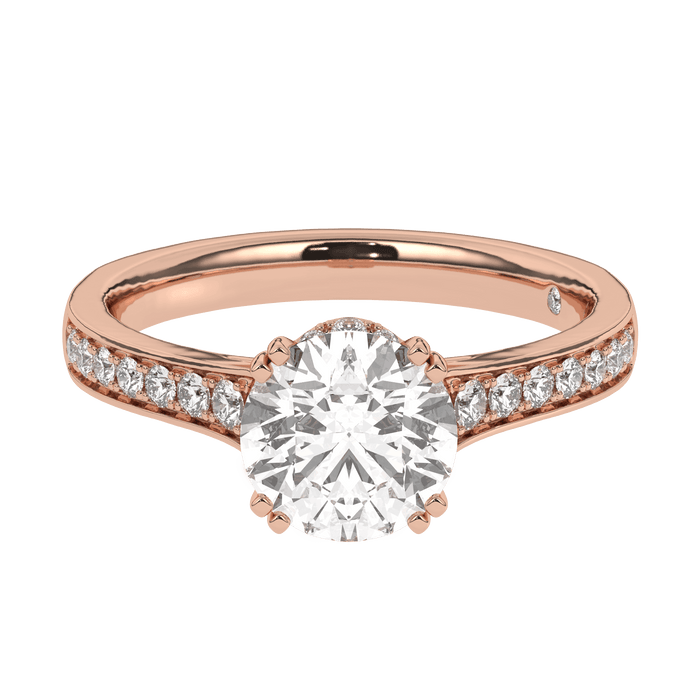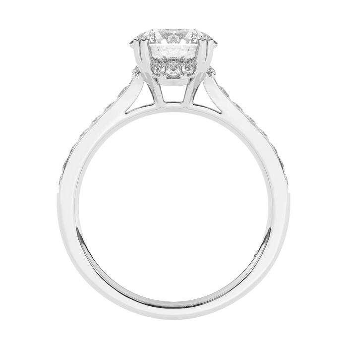 Make the most of your proposal with this sparkling lab grown diamond engagement setting. The lab diamond of your choosing will rest in a hidden halo of stones. The hidden halo of lab diamonds adds something extra to this demur setting. The shank is lined with brilliant lab diamonds for a total of 1/3 carats.