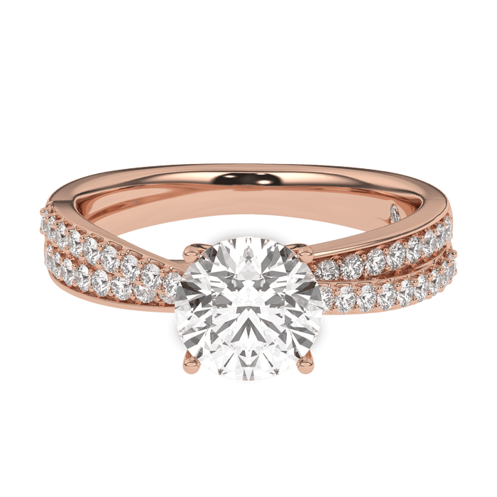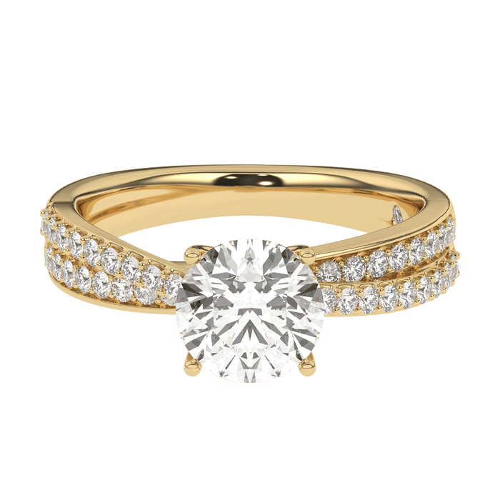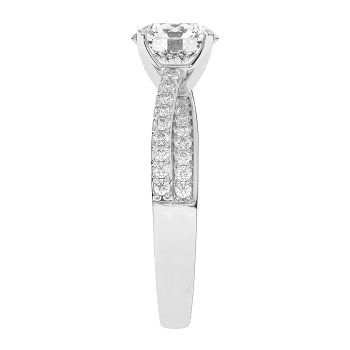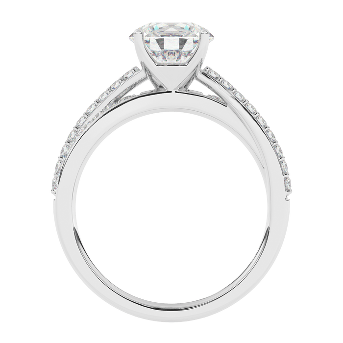 Pull out all the stops with this exquisite lab grown diamond engagement setting. Created in fine gold or platinum, this ribbon design showcases the center stone of your choice on frame lined with shimmering round accent lab diamonds, while the lab grown diamond-lined double row shank is a thoughtful touch.