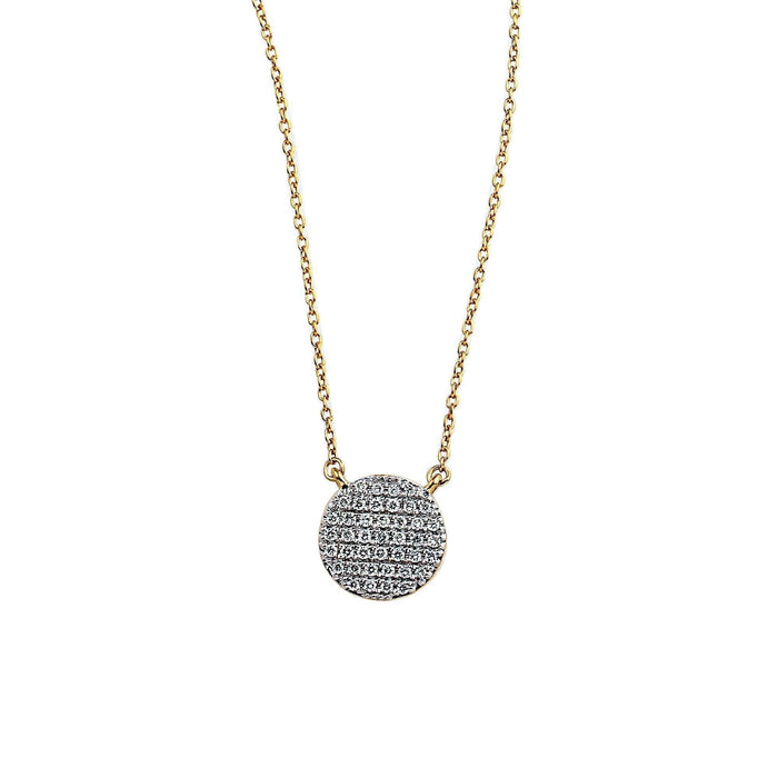 Expertly crafted in either sterling silver or gold over silver, this Disc Diamond Necklace boasts a total diamond carat weight of 1/3, with G-H color and VS-SI clarity. Sparkling lab-grown diamonds adorn the 18" adjustable chain, making it a stunning addition to any outfit.