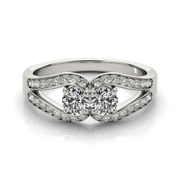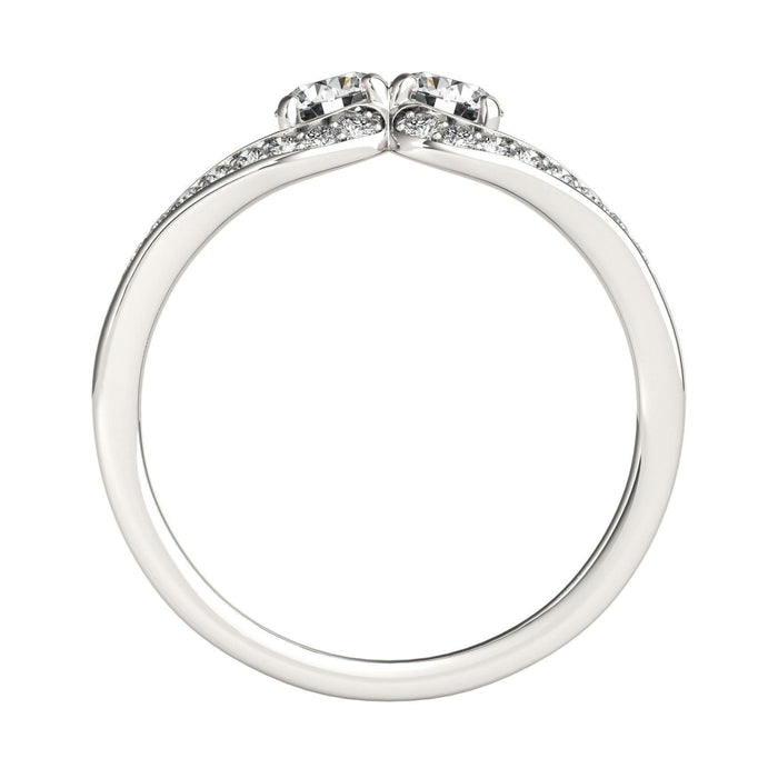 Be as unique as your love with the Duos Sima Ring, crafted from gleaming 14 karat white gold. Two stunning lab diamonds glimmer with G-H color and VS-SI clarity, and are further complemented by delicate side lab diamonds of F-G color and VS-SI clarity totaling 1/4 carat. An elegant complement to any look, this exquisite ring is the perfect reflection of your commitment.