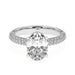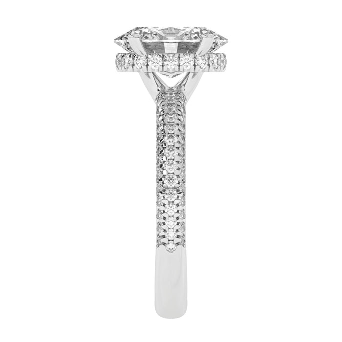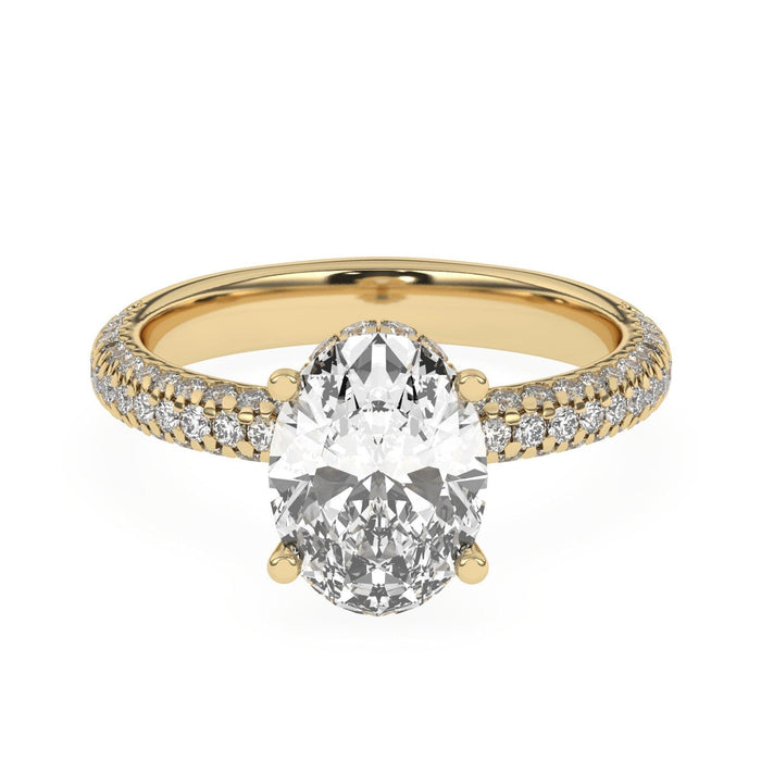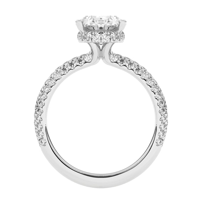 This hidden halo engagement ring features a gold band accented with side 3/4 carat total weight of lab grown diamonds in F-G color and VS-SI clarity. Add a certified lab grown diamond of your choice to complete this ring.