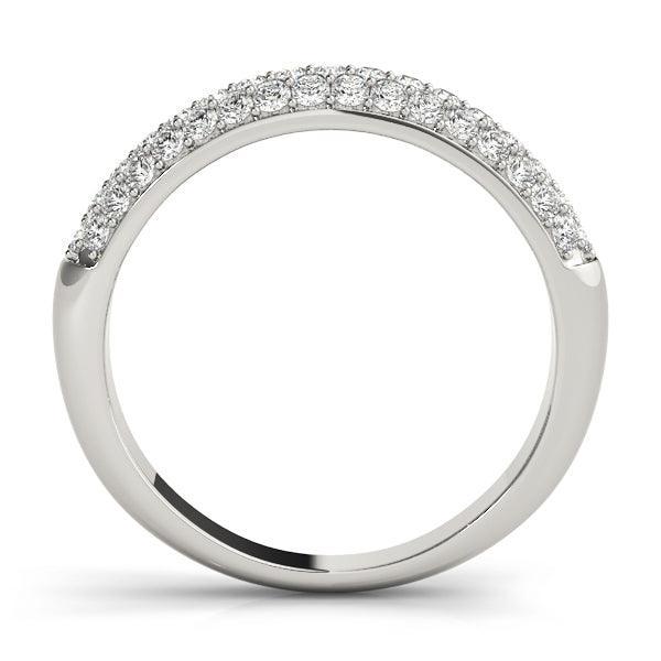 Introducing the Ella Wedding Band: the perfect partner for your engagement ring! It sparkles and shines with three rows of diamond accents equaling 1/2ctw of lab-grown diamonds. Wear it alone or styled with your engagement ring for a timelessly glamorous look!