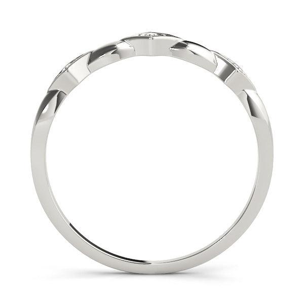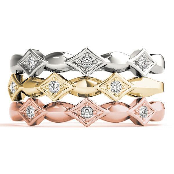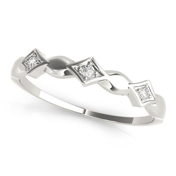 Simple and sweet Emily Band - a 3-stone ring that's perfect for everyday wear. It's great for stacking or for sharing with BFFs! Three metal colors available, why not match and start a trend to express your own style. 3 lab grown diamonds equaling 1/20 carats in total weight and a high polished finish to add shine.
