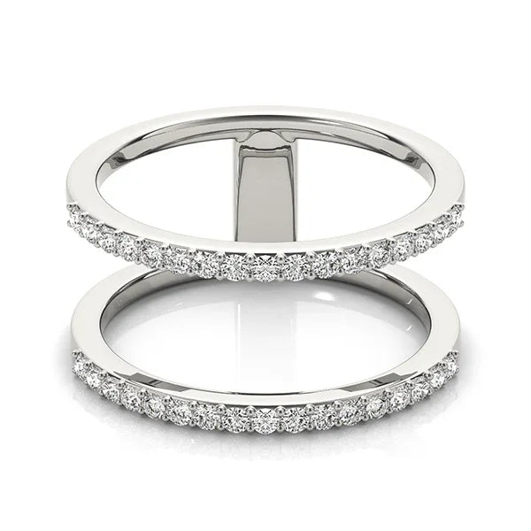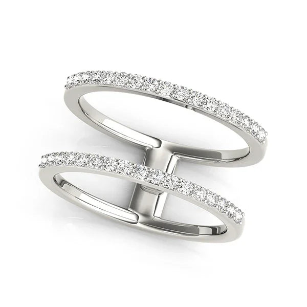 Elevate your diamond ring with this stunning 1/3ctw diamond enhancer. Versatile and elegant, it's the perfect complement as double wedding bands for solitaire engagement rings. Create eye-catching stackable combinations that showcase your personal style. Crafted in sterling silver with 14k gold available upon request, this enhancer transforms your existing jewelry into a dazzling statement piece that captures attention and admiration.