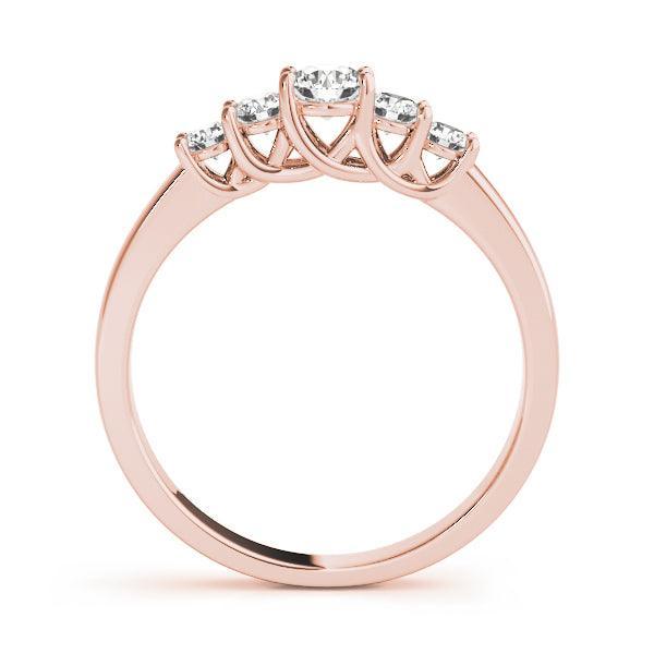 This exquisite, 14K gold Band features a 1/2 carat center stone followed by 4 additional stones, all of lab-grown diamond quality F-G/VS-SI clarity. Its elegant setting elevates its timeless beauty, creating an unforgettable look.