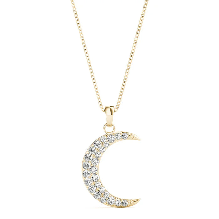 Add a touch of celestial charm with the Luna Fashion Pendant. Featuring a quarter moon design adorned with sparkling 1/5 carat lab-grown diamonds. Choose between sleek sterling silver or warm 14 karat gold to match your style. Perfect for those who love a little cosmic sparkle! The pendant suspends along an 16 inch chain that has a two inch extension and secures with a lobster clasp.