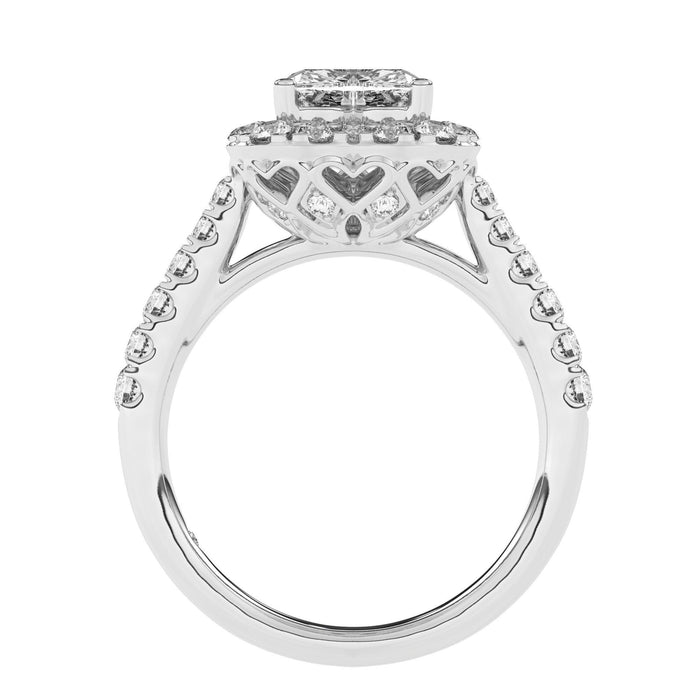 This shimmering lab grown diamond engagement setting has a beautiful reminder of all the love you hold in your heart for her in, open hearts line the setting beneath the crown. The lab grown diamond you choose will be encircled by a frame adorned with dazzling accent lab created diamonds, underneath the crown and additional lab grown diamonds line the ring's graceful shank to complete this radiant look. Captivating with 1/4 carat total weight of lab grown diamonds and a bright polished shine, this engagement ring is designed to impress for a lifetime.