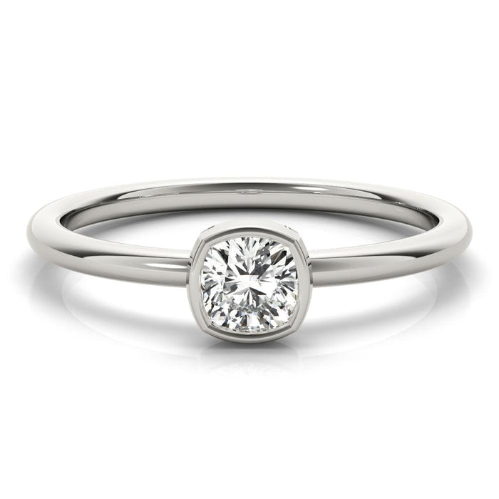 The perfect blend of elegance and playfulness! This ring features a floating bezel set solitaire with a cushion diamond, giving it a slender design without sacrificing quality. Make a statement without saying a word!