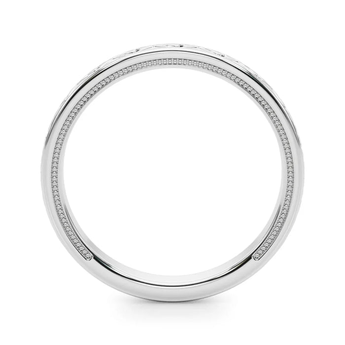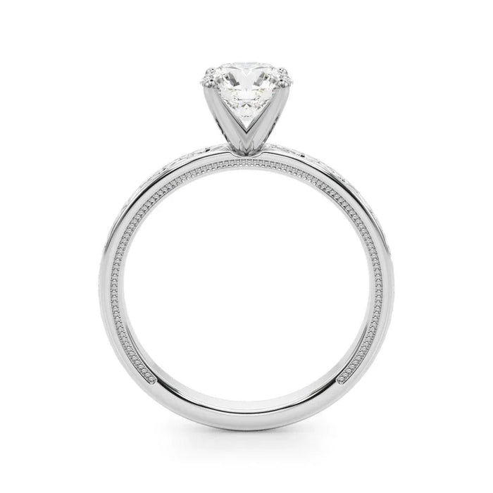 Minimum F color and VS2 quality, IGI certified center lab grown diamond. Average center diamond weight between 1.0 to 1.05cts. This bridal set is made to order in the metal and ring size chosen; it takes 3-4 weeks to make and ship.
