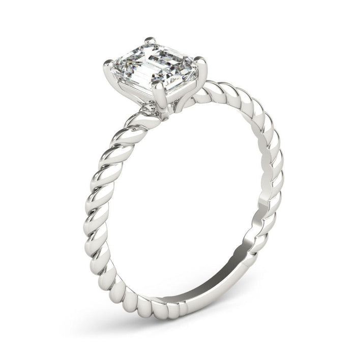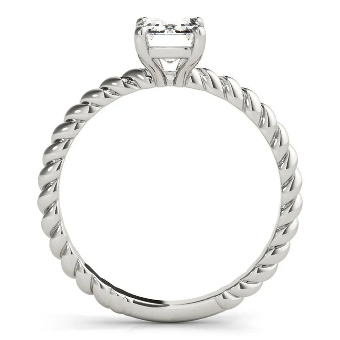 The Helen solitaire engagement ring is a stunning proposal ring featuring a classic rope design, symbolizing everlasting love. The simple twist shank ensures a great fit and brings out the subtle beauty of the design. This 1.0 carat emerald cut lab created diamond ring is E-G color and VS-SI clarity for the perfect touch. The matching wedding band ties it together, completing the look, sold separately here.