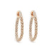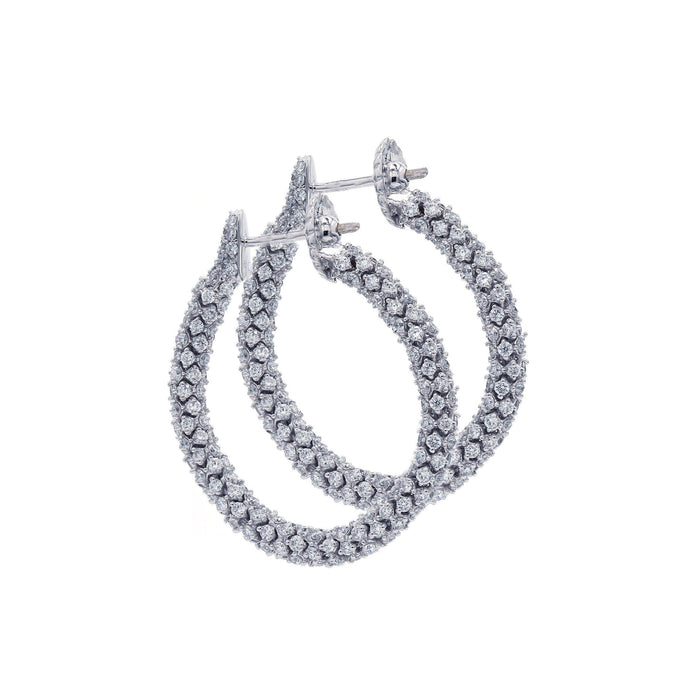 Add a sultry look to your wardrobe with these lab grown diamond shimmering lace design hoop earrings. Crafted in precious 14K gold, each earring features a sparkling F-G color and VS-SI clarity of diamonds along the chain loop. Radiant with 5.00 carat total weight of lab grown diamonds and a brilliant, buffed luster, these hoops secure with attached backs.