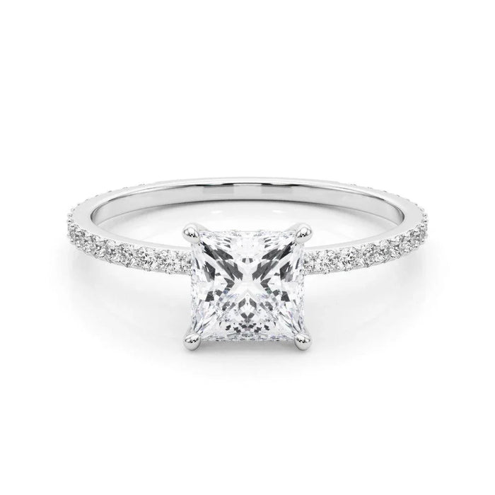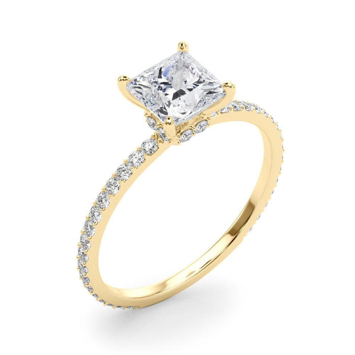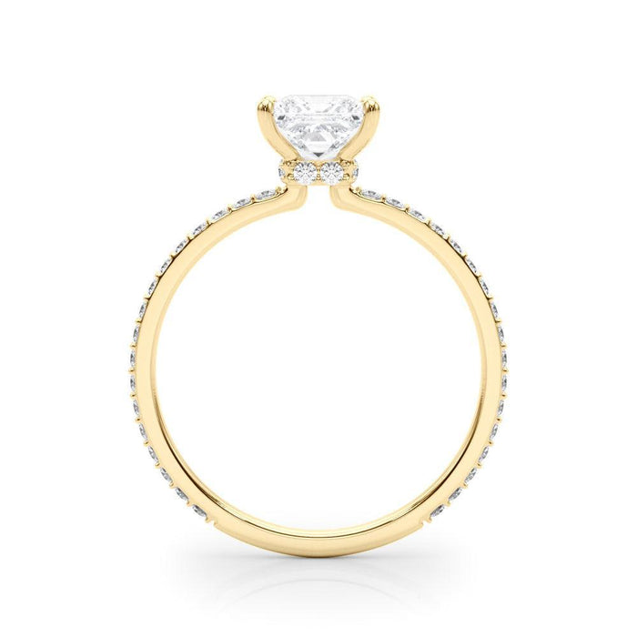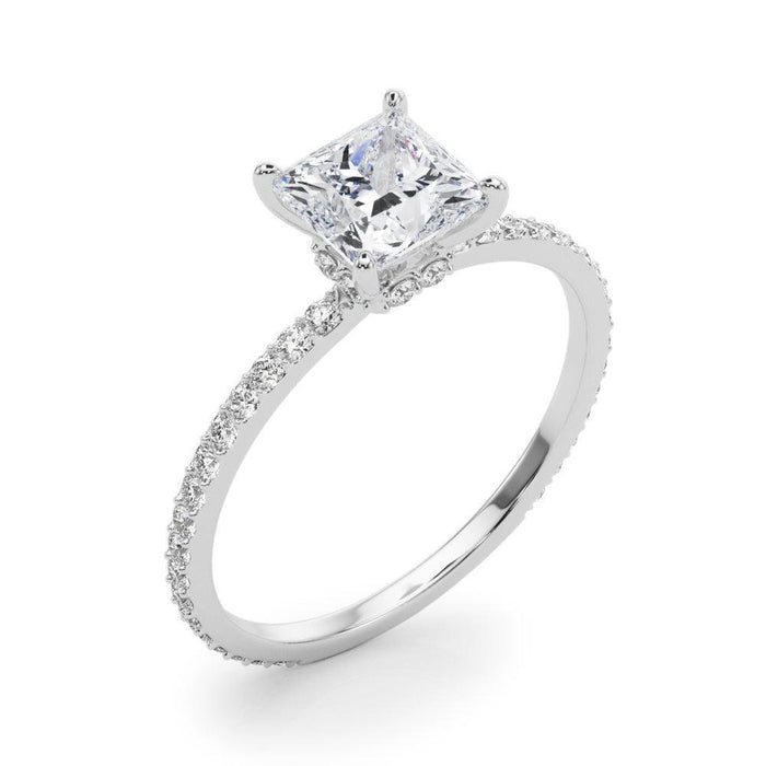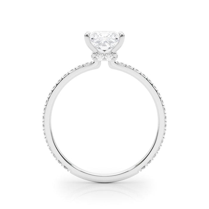 This timeless Jade Hidden Halo Setting features 1/3 Ct. T.W lab grown diamond accents and a 4-prong claw style, making it a beautiful choice for those seeking elegance and lasting sparkle. The princess cut lab grown diamonds you chose is sure to catch the eye with its brilliant clarity and shimmer.