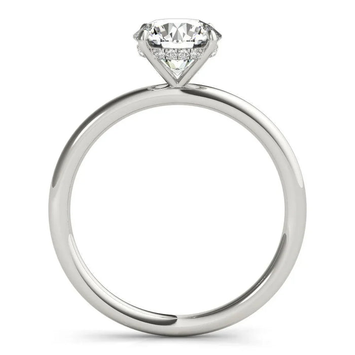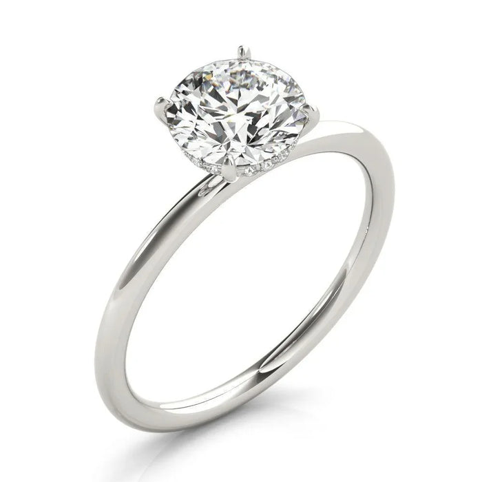 This Jasmine Hidden Halo Engagement Ring is crafted with a hidden halo design, featuring 1/20ctw of lab grown diamonds for added sparkle around your 1.0 lab grown diamond. Center diamond is ranking for grade D-E VS color/clarity; it's your perfect proposal ring. The carefully placed diamonds add an elegant surprise to the center stone, creating a beautiful and trendy thin band look.