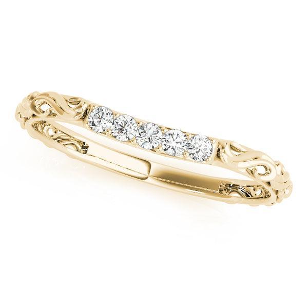The Kate Band from our collection of wedding bands features an intricate filigree design with 1/10ctw of lab grown diamonds, creating a stunning vintage-inspired look. Perfect for completing a set with its matching engagement ring.