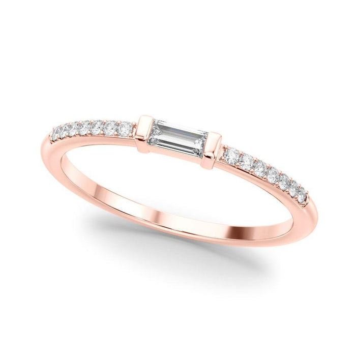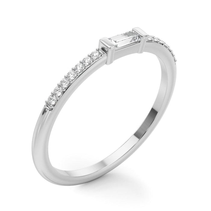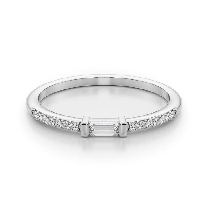 The Kaylee Band is the perfect choice for your special someone, which could be You. This promise ring features a stunning baguette center stone lined with round diamond accents on each side, all totaling 1/6ctw of lab-grown diamonds that will stay in your collection for years to come. With its timeless design, the Kaylee Band will never go out of style.