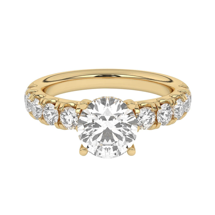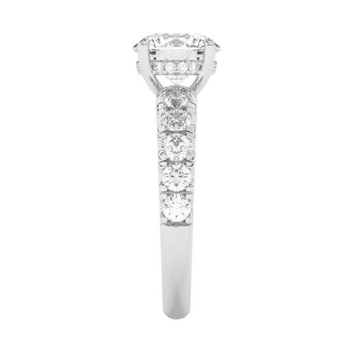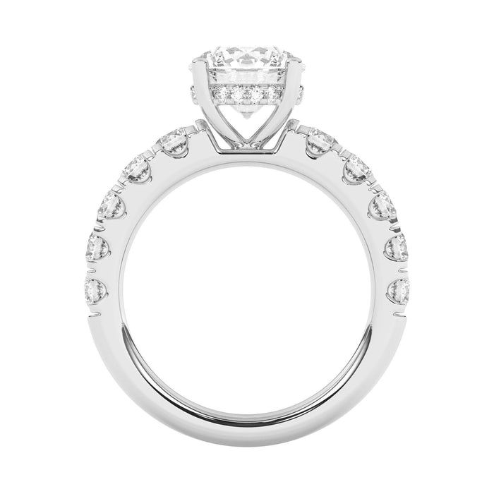 This engagement ring features a gold or platinum band with a hidden halo accent plus a larger band width for a side 1 1/6 carat total weight of lab grown diamonds in F-G color and VS-SI clarity. Add a certified lab grown diamond of your choice to complete this ring. This setting is recommended for larger than 1.0 carat diamonds.