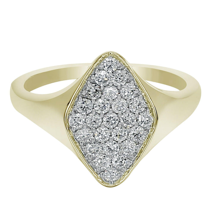 Create a topic of conversation with this brilliant signet fashion cluster lab grown diamond ring. Crafted in 14K gold, this trending diamond shaped style has 1/2 carat total weight of lab-grown diamonds with a color ranking of F-G with VS-SI clarity. A classic addition to any jewelry wardrobe, this ring is certain to be worn often.