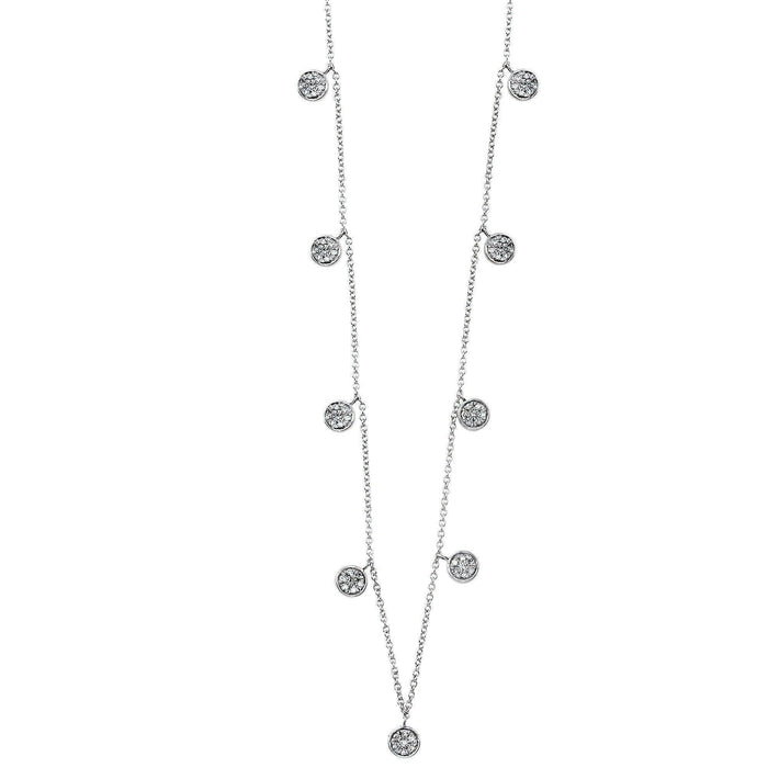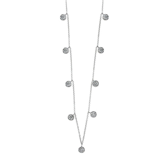 Make a statement with this dangling necklace! Featuring sparkling lab grown diamonds (1/2Ctw, G-H/VS-SI), this necklace is available in sterling silver or gold over silver. The dangling diamond stations add an elegant touch, and the 18 inch adjustable chain ensures the perfect fit. Shine bright with this playful and stylish piece!