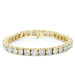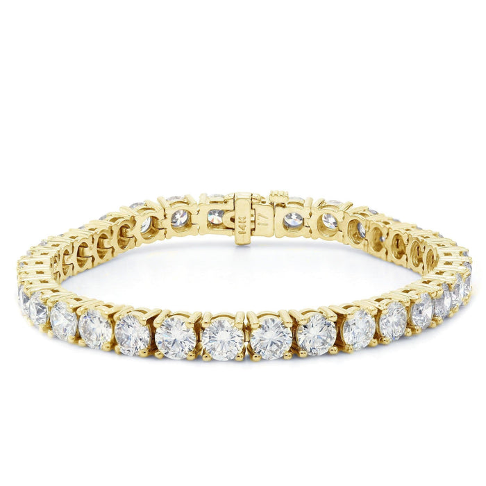 Lux tennis bracelet with 20 1/2 carats of lab-grown diamonds. A row of round lab created diamonds with a color ranking of I-J and VS-SI clarity, radiates in 14K white or yellow gold. A mix of time-honored tradition and excellence, this 8-inch bracelet secures with a tongue and groove clasp. This handsome bracelet can stand alone, extremely versatile and fit into any wardrobe and complement any occasion.