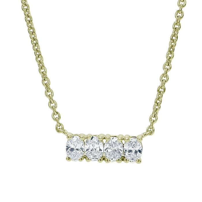 Elevate your look with the timeless Michelle Necklace. Crafted with G-H VS-SI lab-grown diamonds, this 4-stone oval, 1/2Ctw horizontal necklace is a stunning addition to any wardrobe. The 16-inch cable chain with a two-inch extension ensures a perfect fit for any size. Look fabulous and feel confident with this beautiful piece of jewelry!