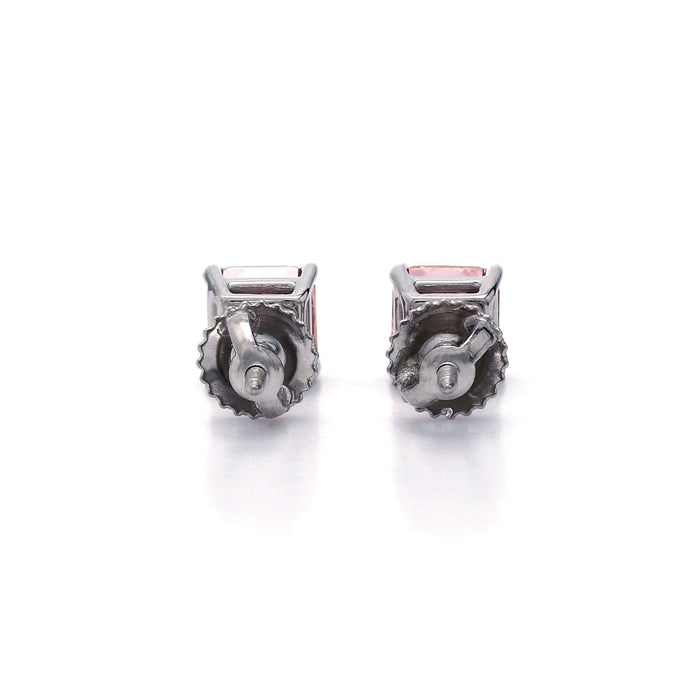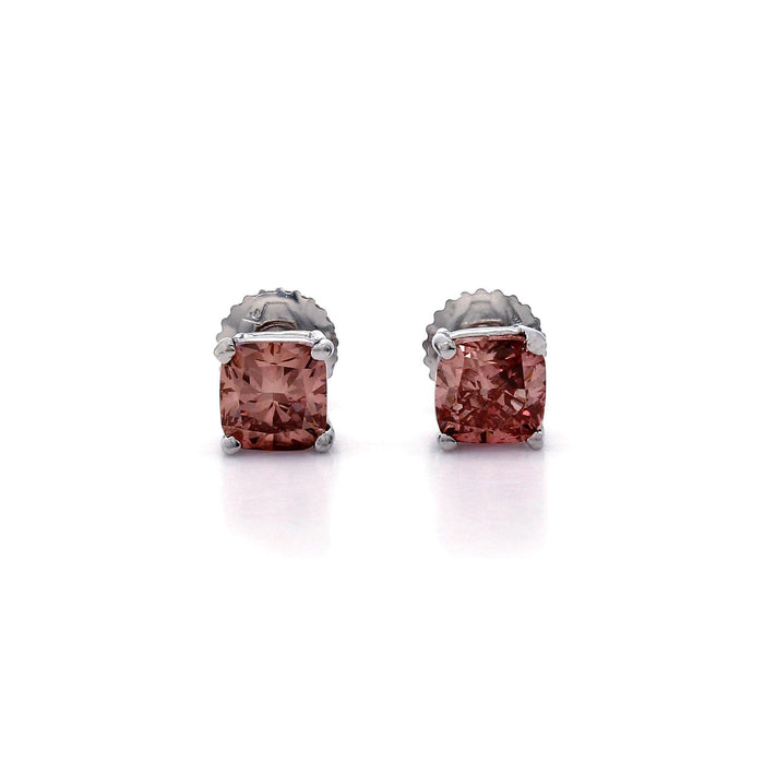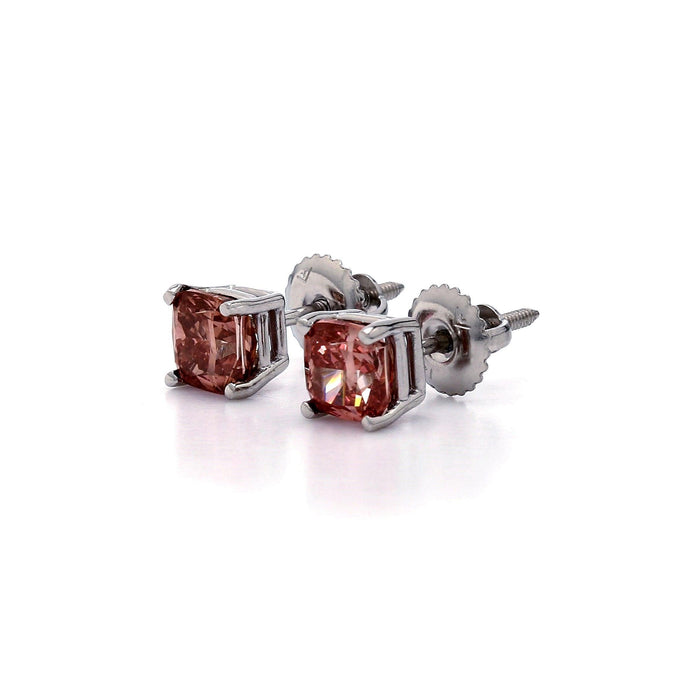 Simple and classic these 2.00 carat total weight lab grown pink color diamond solitaire stud earrings are perfect for everyday wear. The solitaires are set in a four-prong basket style 14K white gold post setting with screw back closures. These beautiful earrings can stand alone or have an earring jacket to dress them up, extremely versatile and fit into any wardrobe and complement any occasion.