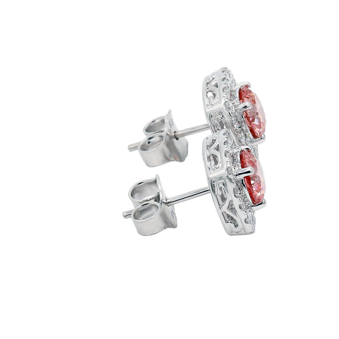 Make a wonderful impression with these beautiful pink and white halo 2.00 carat total weight lab grown diamond stud earrings. Crafted in 14K gold, each breathtaking earring features a 3/4 carat center for a 1 1/2 carat total weight of pink lab diamonds. Lustrous F-G, VS-SI white lab grown diamonds surround the center for a combined total weight of 0.50 carats. Polished to a bright shine, these post earrings secure comfortably with friction backs.