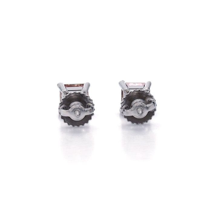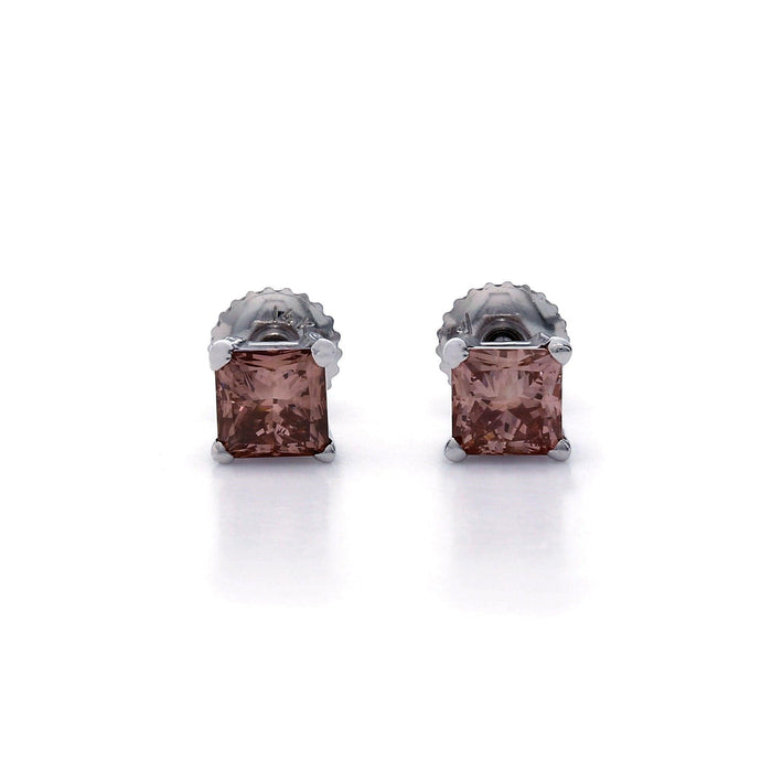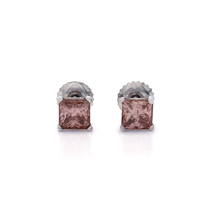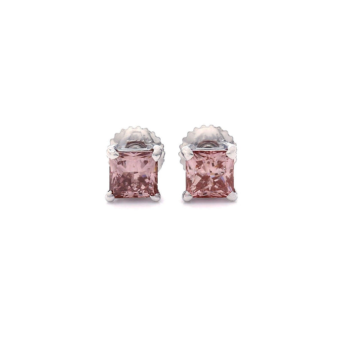 Simple and classic this 1 1/2 carat total weight lab grown purple color diamond solitaire stud earrings are perfect for everyday wear. The solitaires are set in a four prong basket style 14K white gold post setting with screw back closures. These beautiful earrings can stand alone or have an earring jacket to dress them up, extremely versatile and fit into any wardrobe and complement any occasion.