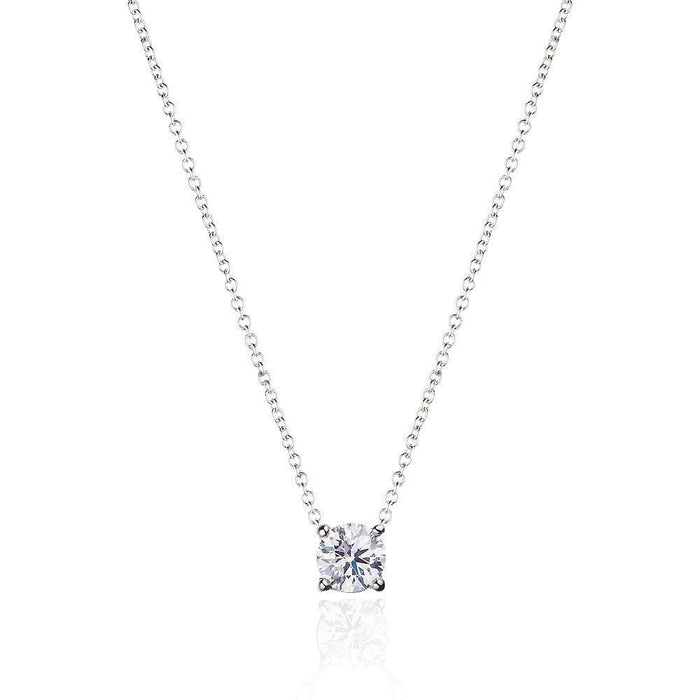 Simple, yet magnificent enough to stand alone, the beauty of a solitaire needs no accompaniment. This setting can hold the lab grown diamond you choose between 0.45 up to 1.50 carat round for a pendant in 14K yellow, white or rose gold. A stunning accessory that suspends along an 16 inch chain that has a two inch extension for a possible 18 inch fit. Giving it the a little diversity for occasion worn and secures with a lobster clasp for ease of wear.
