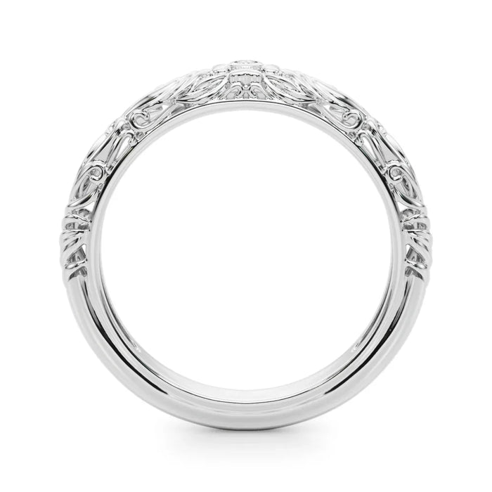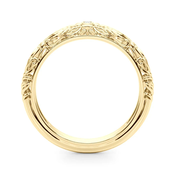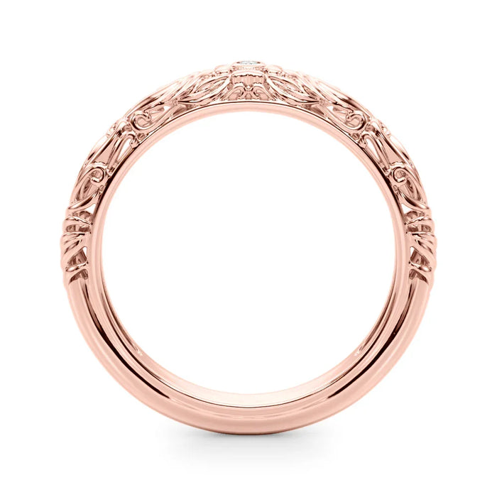 Embrace your inner royal with our Renaissance Band! This playful piece features a dazzling 0.01ct lab grown diamond nestled in a flower center, surrounded by intricate filigree detailing. The band's Renaissance-inspired design adds a touch of historical charm to your everyday sparkle. Perfect for the modern princess who doesn't take herself too seriously!