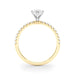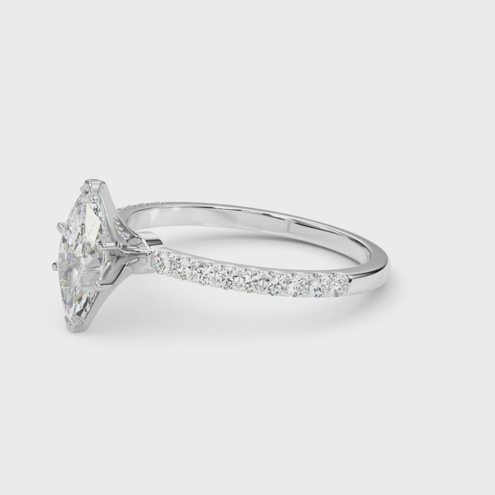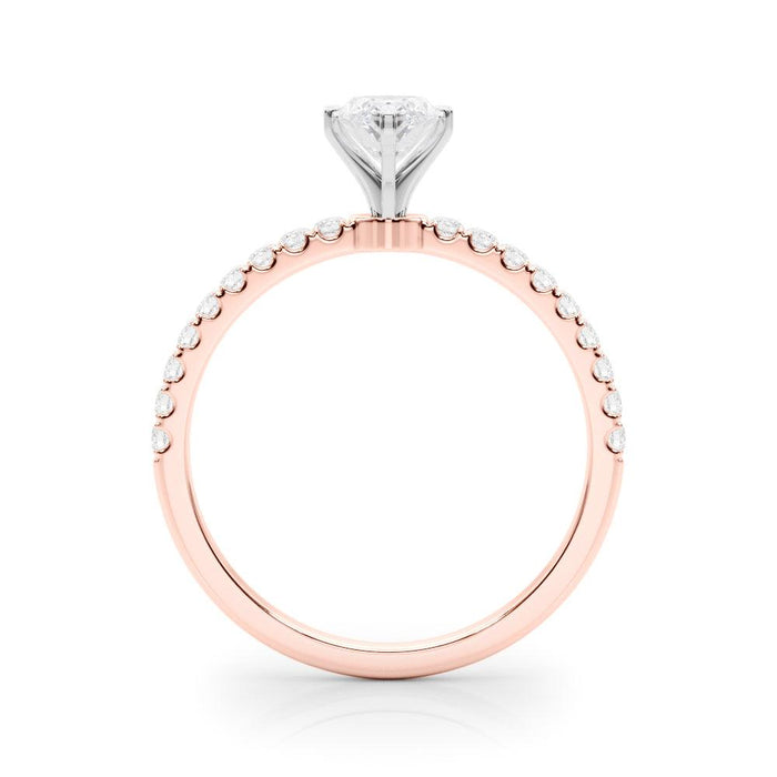 Depending on the choice of your center lab created diamond, the setting diamond weight will adjust proportionately to keep the same desired style. Smaller diamonds or different shaped diamonds will cause the prong count to adjust or the whole center will adjust to the best fit for that loose lab diamond you chose.